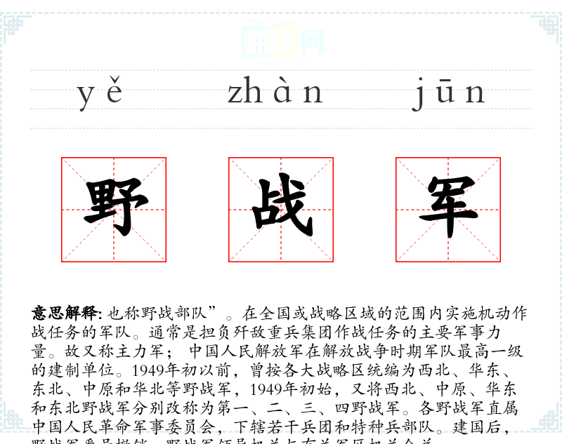 "野战军"的意思解释、野战军是什么意思由翻译网汉语词典查词提供。