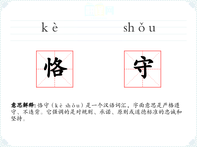恪守(kè shǒu)是一个汉语词汇,字面意思是严格遵守、不违背。它强调的是对规则、承诺、原则或道德标准的忠诚和坚持。