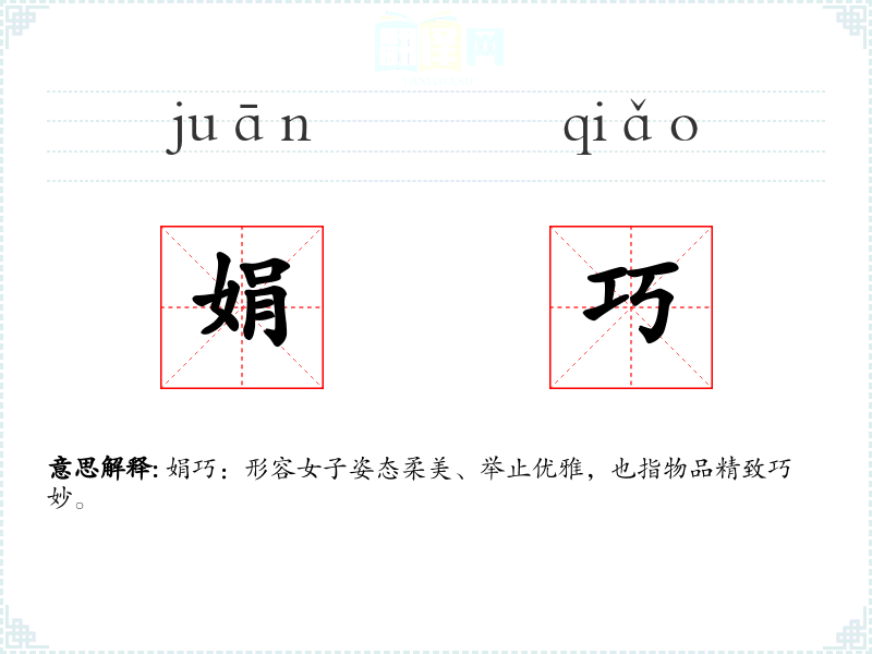 娟巧:形容女子姿态柔美、举止优雅,也指物品精致巧妙。