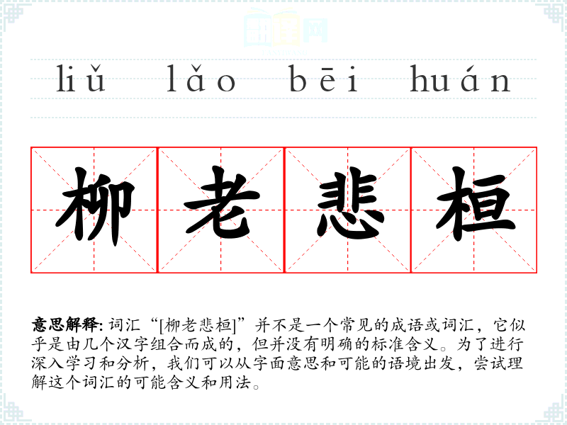词汇“[柳老悲桓]”并不是一个常见的成语或词汇,它似乎是由几个汉字组合而成的,但并没有明确的标准含义。为了进行深入学习和分析,我们可以从字面意思和可能的语境出发,尝试理解这个词汇的可能含义和用法。