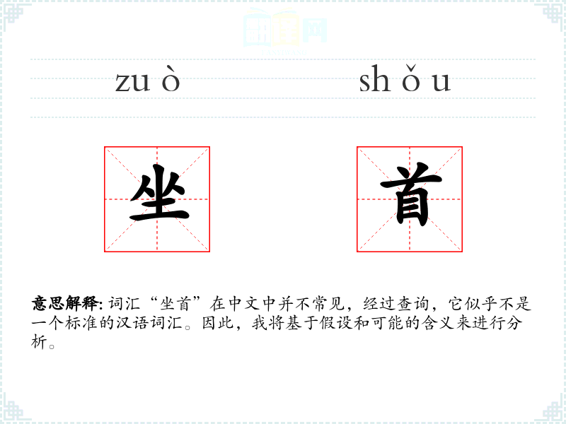 词汇“坐首”在中文中并不常见,经过查询,它似乎不是一个标准的汉语词汇。因此,我将基于假设和可能的含义来进行分析。