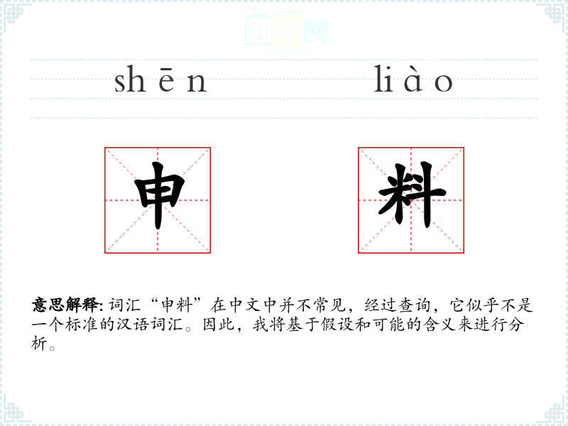 - 反义词:(由于“申料”不是一个常用词汇,反义词可能不适用)