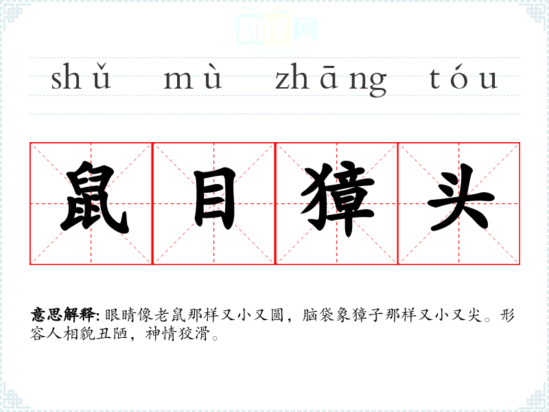 眼睛像老鼠那样又小又圆,脑袋象獐子那样又小又尖。形容人相貌丑陋,神情狡滑。