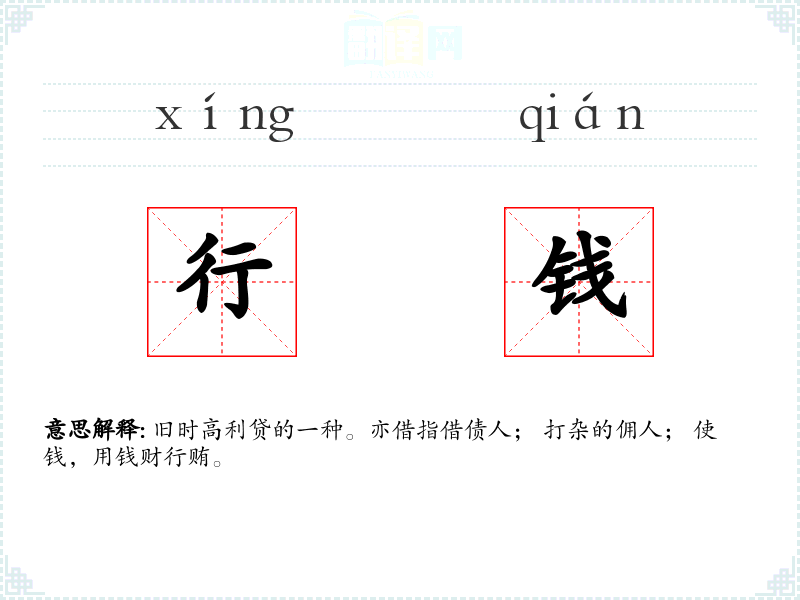 旧时高利贷的一种。亦借指借债人; 打杂的佣人; 使钱,用钱财行贿。