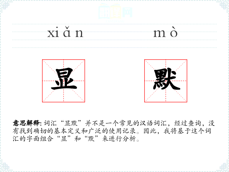 由于“显默”不是一个标准词汇,它的词源和演变无从考证。