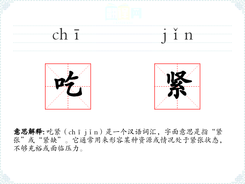 吃紧(chī jǐn)是一个汉语词汇,字面意思是指“紧张”或“紧缺”。它通常用来形容某种资源或情况处于紧张状态,不够充裕或面临压力。