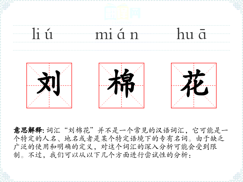 由于“刘棉花”不是一个标准词汇,我们无法探讨其词源和历史演变。