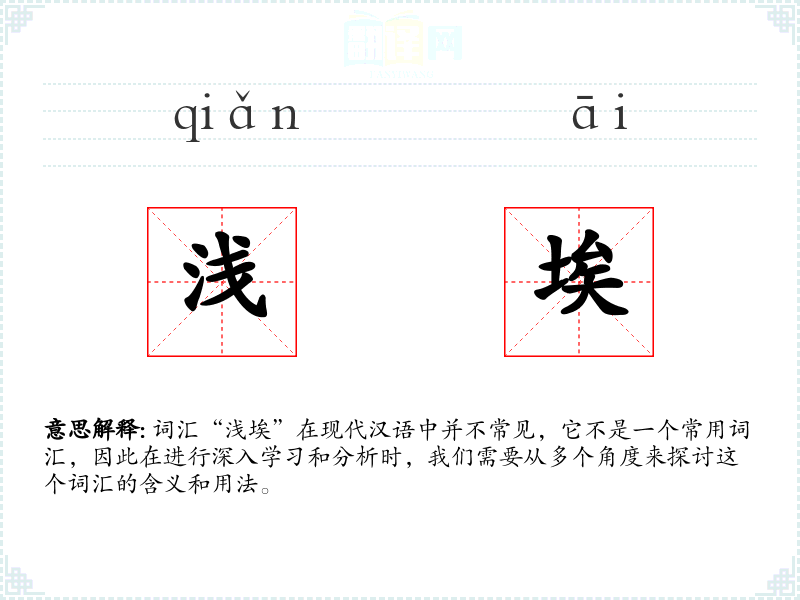 词汇“浅埃”在现代汉语中并不常见,它不是一个常用词汇,因此在进行深入学习和分析时,我们需要从多个角度来探讨这个词汇的含义和用法。