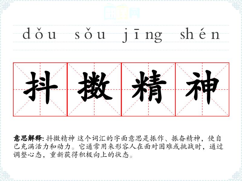 抖擞精神 这个词汇在我语言学和表达中具有重要性,它不仅是一个词汇,更是一种生活态度和精神象征。通过学和使用这个词汇,我能够更好地理解如何在逆境中保持积极的心态,这对于个人的成长和发展至关重要。