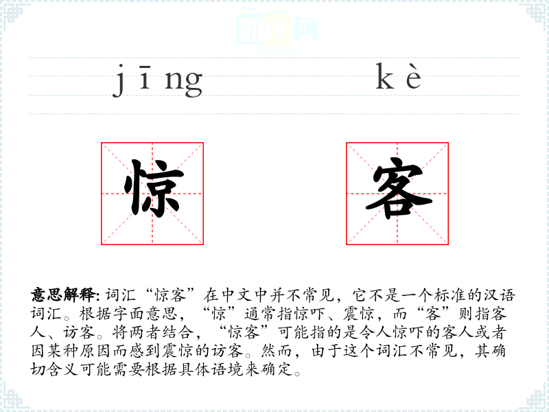 "惊客"的意思解释、惊客是什么意思由翻译网汉语词典查词提供。