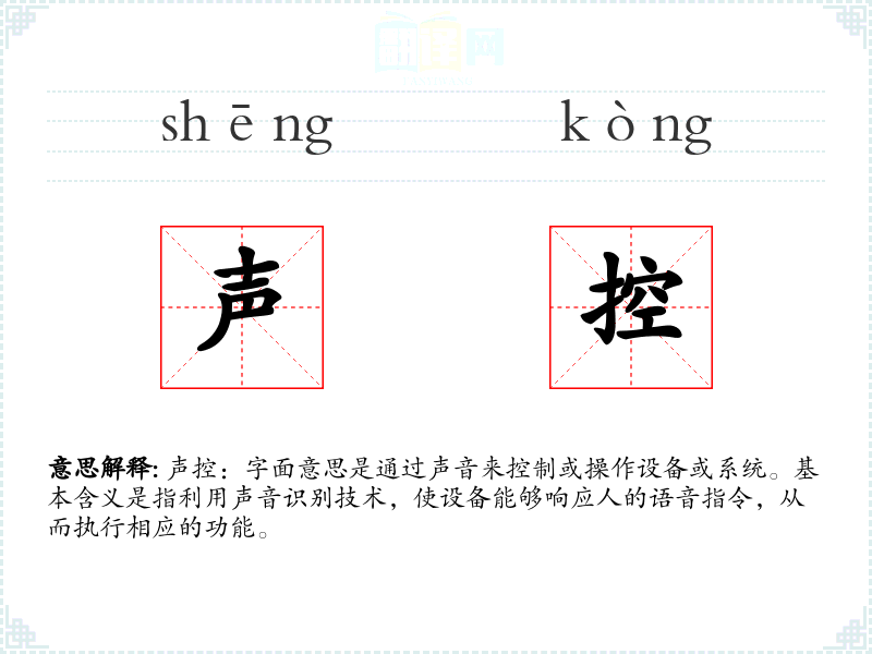 "声控"的意思解释、声控是什么意思由翻译网汉语词典查词提供。