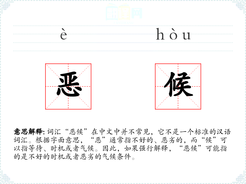 "恶候"的意思解释、恶候是什么意思由翻译网汉语词典查词提供。