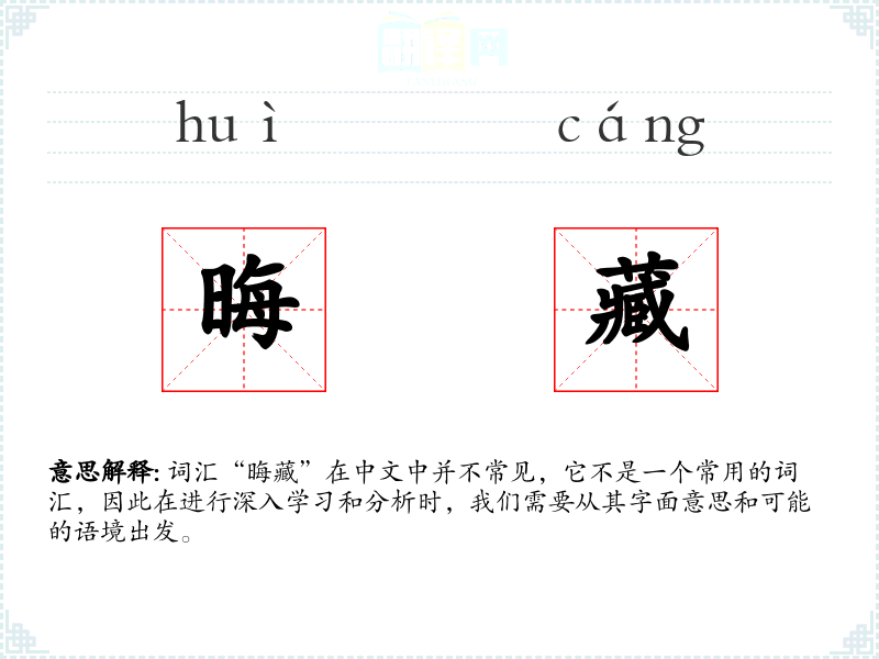 词汇“晦藏”在中文中并不常见,它不是一个常用的词汇,因此在进行深入学*和分析时,我们需要从其字面意思和可能的语境出发。