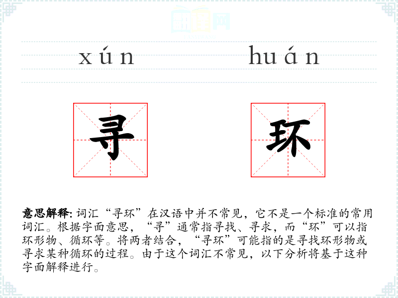 由于“寻环”不是一个常用词汇,它在不同语言或文化中的对应词汇可能不存在,或者有不同的表达方式。