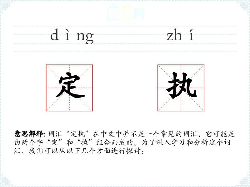 词汇“定执”在中文中并不是一个常见的词汇,它可能是由两个字“定”和“执”组合而成的。为了深入学习和分析这个词汇,我们可以从以下几个方面进行探讨: