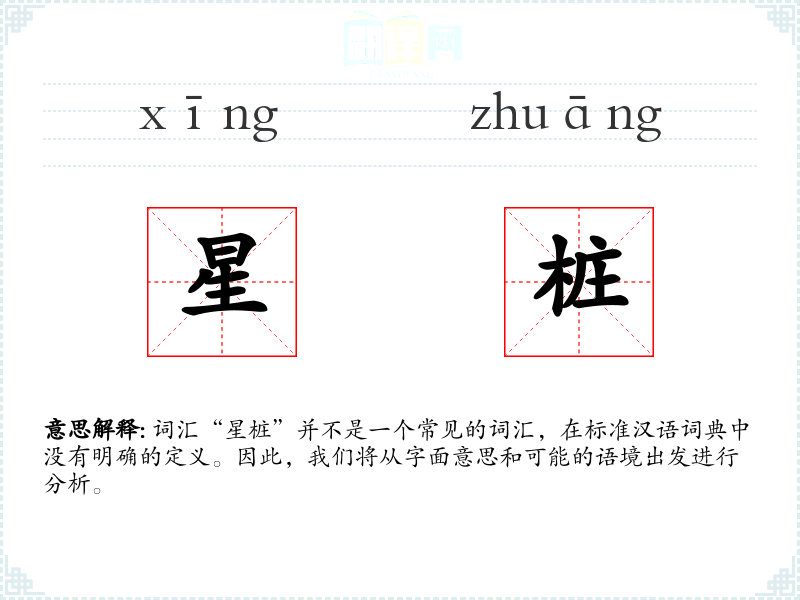 词汇“星桩”并不是一个常见的词汇,在标准汉语词典中没有明确的定义。因此,我们将从字面意思和可能的语境出发进行分析。