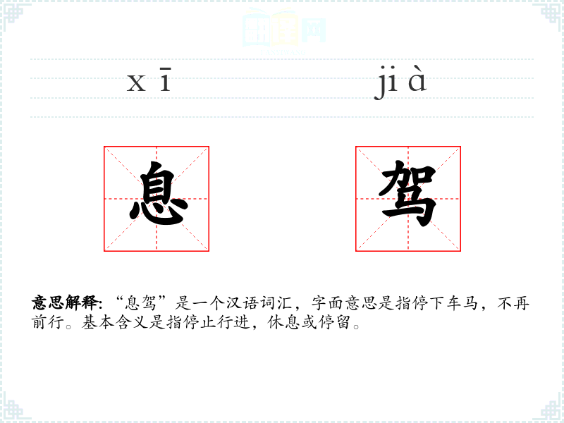 "息驾"的意思解释、息驾是什么意思由翻译网汉语词典查词提供。