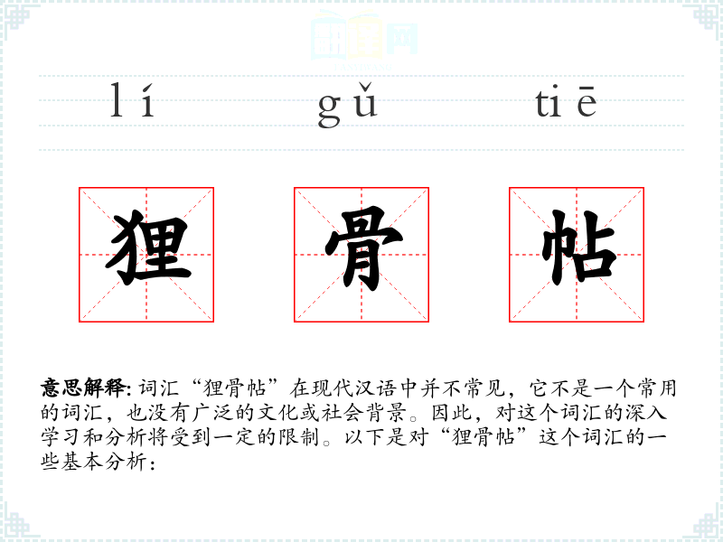 ※ "狸骨帖"的意思解释、狸骨帖是什么意思由翻译网汉语词典查词提供。