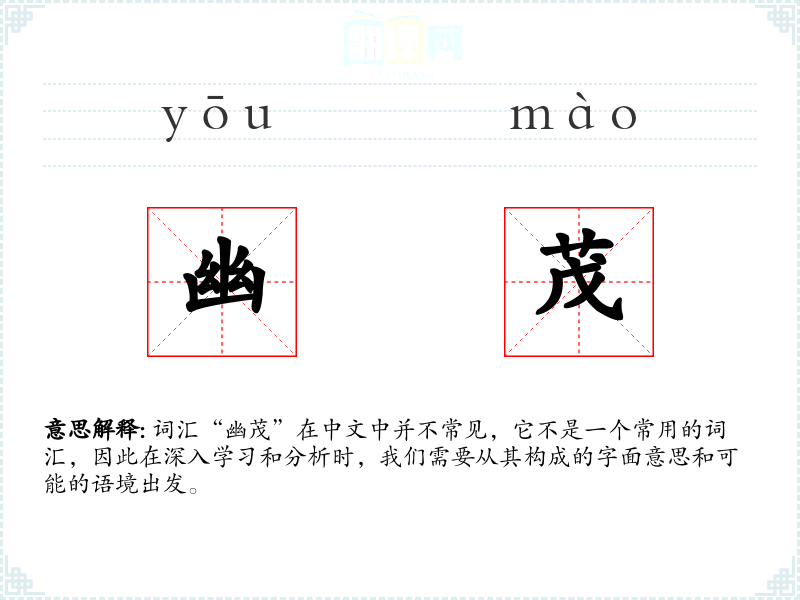 词汇“幽茂”在中文中并不常见,它不是一个常用的词汇,因此在深入学习和分析时,我们需要从其构成的字面意思和可能的语境出发。