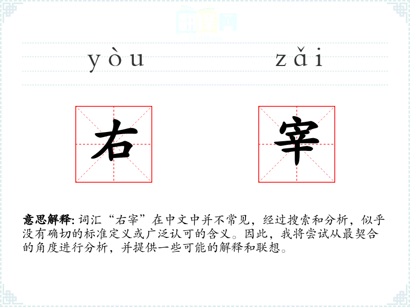 由于“右宰”不是一个标准词汇,我们可以尝试从字面意思进行解释: