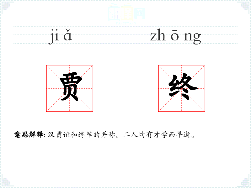 汉贾谊和终军的并称。二人均有才学而早逝。