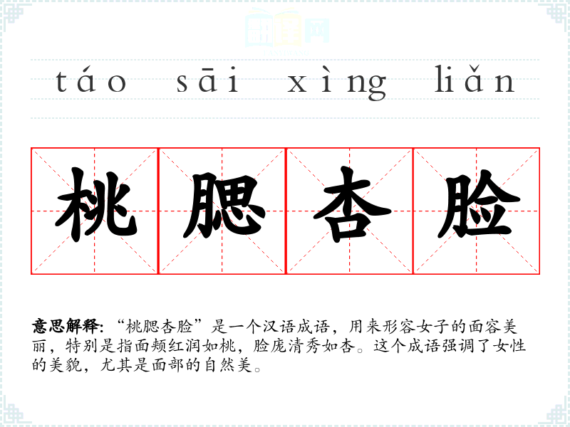“桃腮杏脸”这个成语不仅是一个描述女性美貌的词汇,也是中国传统文化中对美的一种理想化表达。它在文学和日常语言中都有其独特的价值和意义,是汉语中一个富有文化内涵的词汇。