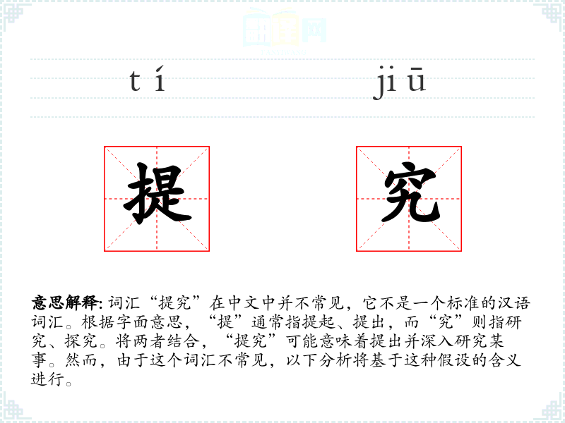 - 反义词:忽略、忽视(因为“提究”涉及深入研究,而忽略和忽视则是不去研究或探讨)
