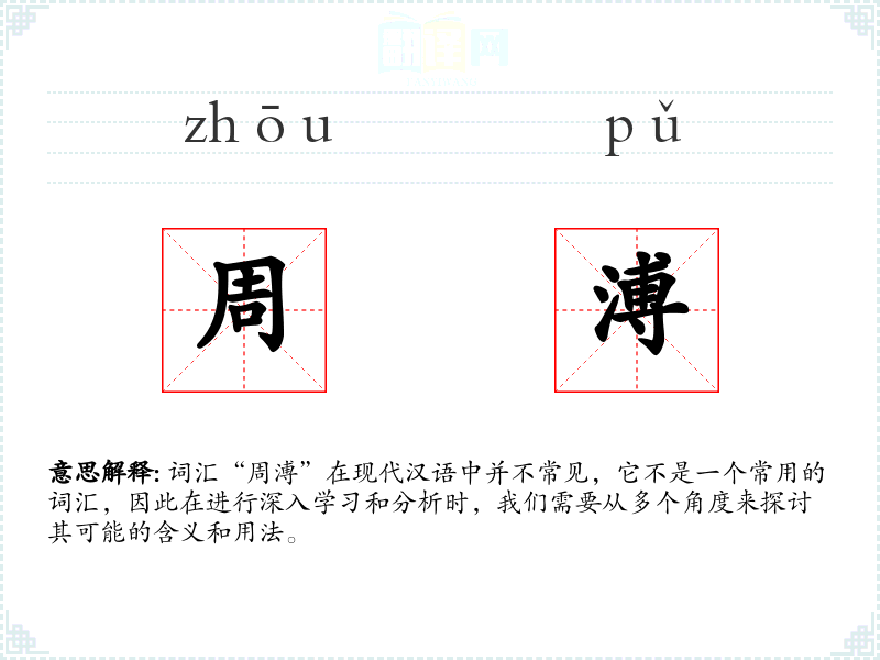 词汇“周溥”在现代汉语中并不常见,它不是一个常用的词汇,因此在进行深入学习和分析时,我们需要从多个角度来探讨其可能的含义和用法。