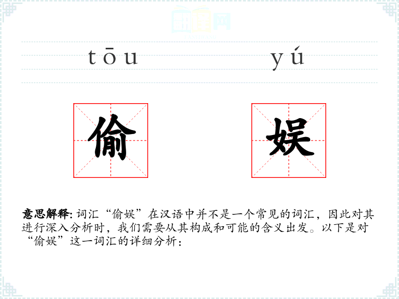 词汇“偷娱”在汉语中并不是一个常见的词汇,因此对其进行深入分析时,我们需要从其构成和可能的含义出发。以下是对“偷娱”这一词汇的详细分析: