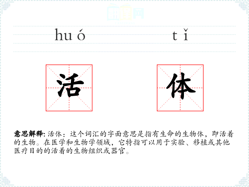 "活体"的意思解释、活体是什么意思由翻译网汉语词典查词提供。