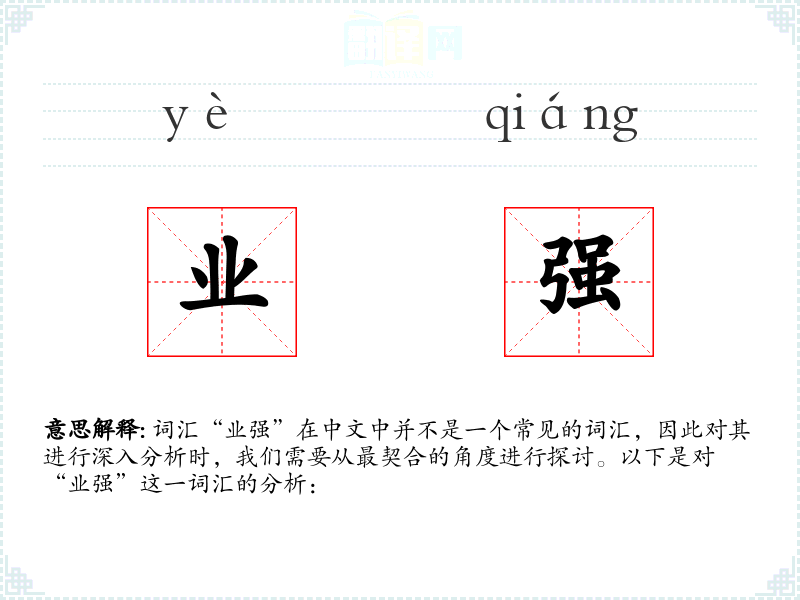 词汇“业强”在中文中并不是一个常见的词汇,因此对其进行深入分析时,我们需要从最契合的角度进行探讨。以下是对“业强”这一词汇的分析: