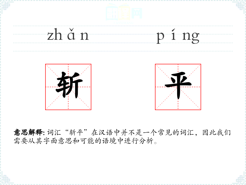词汇“斩平”在汉语中并不是一个常见的词汇,因此我们需要从其字面意思和可能的语境中进行分析。
