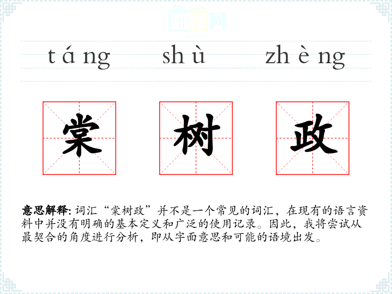 “棠树政”作为一个不常见的词汇,其分析主要基于字面意思和可能的语境。在语言学习和表达中,了解词汇的背景和可能的用法是重要的,但对于不常见的词汇,其学习和应用的价值有限。