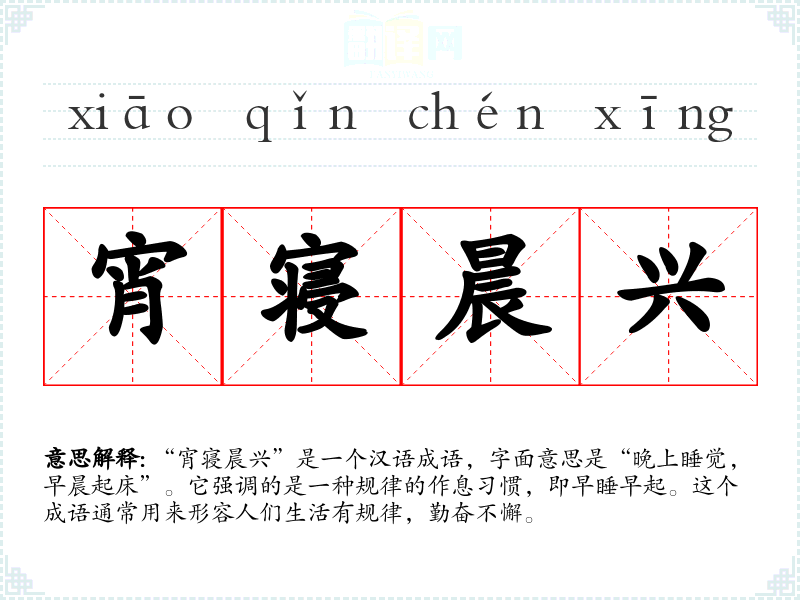 “宵寝晨兴”这个成语不仅是一种生活建议,也是一种文化传承。它提醒我们保持良好的作息惯,对个人健康和社会生活都有积极影响。在语言学和表达中,理解和运用这样的成语可以丰富我们的表达方式,增强语言的文化内涵。