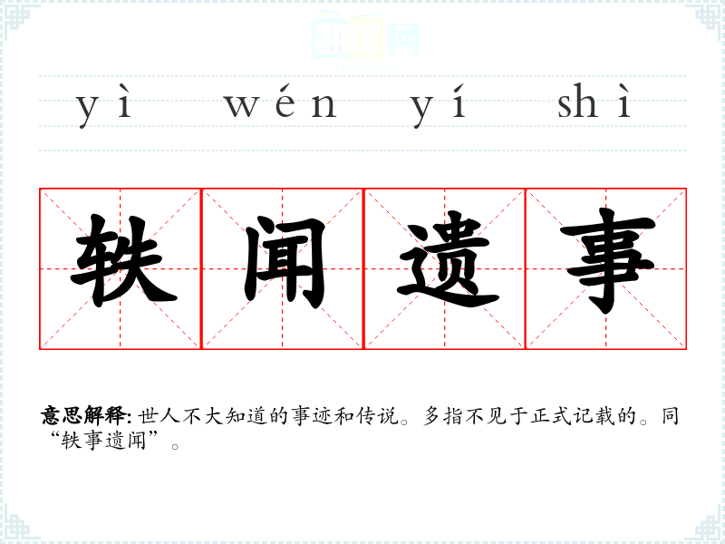 世人不大知道的事迹和传说。多指不见于正式记载的。同“