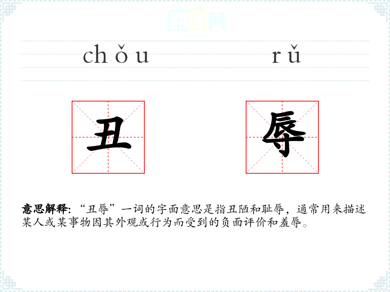 "丑辱"的意思解释、丑辱是什么意思由翻译网汉语词典查词提供。
