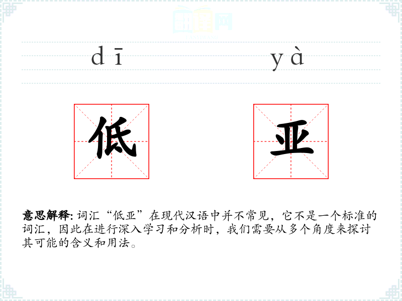 词汇“低亚”在现代汉语中并不常见,它不是一个标准的词汇,因此在进行深入学习和分析时,我们需要从多个角度来探讨其可能的含义和用法。