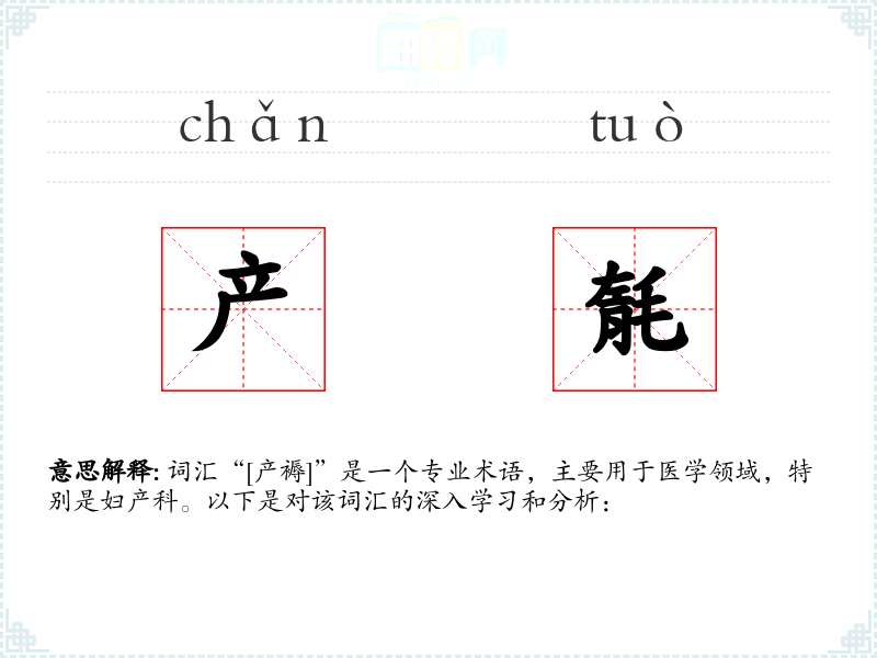 词汇“[产褥]”是一个专业术语,主要用于医学领域,特别是妇产科。以下是对该词汇的深入学*和分析: