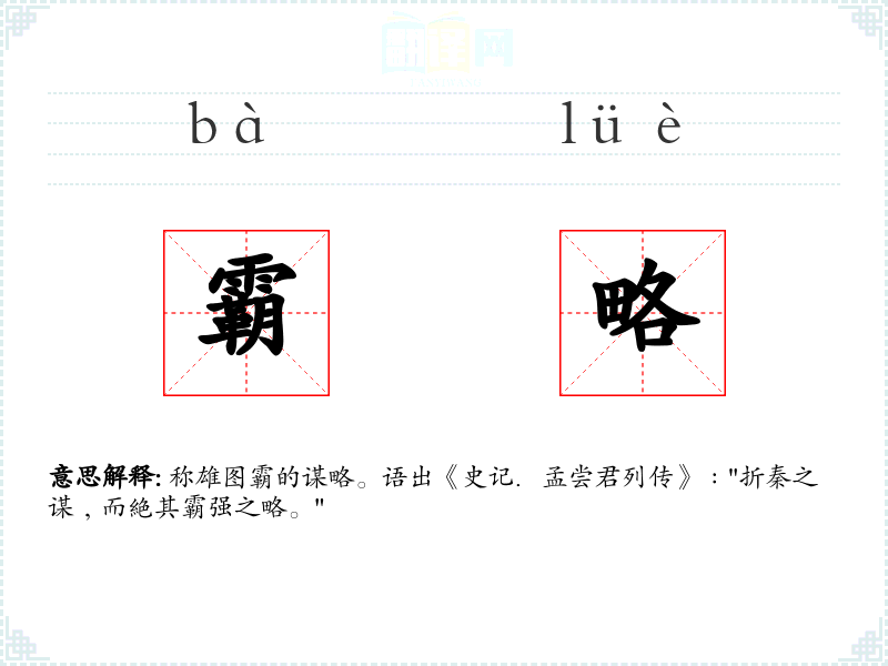 称雄图霸的谋略。语出《史记.孟尝君列传》﹕"折秦之谋﹐而絶其霸强之略。"