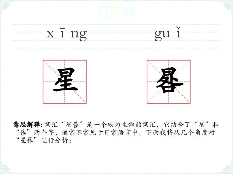 词汇“星晷”是一个较为生僻的词汇,它结合了“星”和“晷”两个字,通常不常见于日常语言中。下面我将从几个角度对“星晷”进行分析: