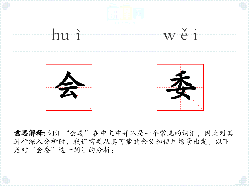 词汇“会委”在中文中并不是一个常见的词汇,因此对其进行深入分析时,我们需要从其可能的含义和使用场景出发。以下是对“会委”这一词汇的分析: