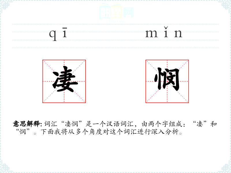 词汇“凄悯”是一个汉语词汇,由两个字组成:“凄”和“悯”。下面我将从多个角度对这个词汇进行深入分析。