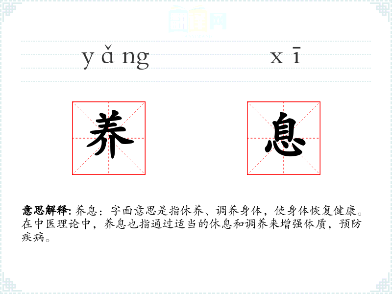 养息:字面意思是指休养、调养身体,使身体恢复健康。在中医理论中,养息也指通过适当的休息和调养来增强体质,预防疾病。