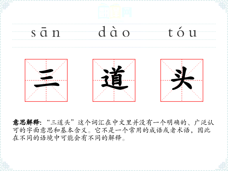 “三道头”这个词汇在中文里并没有一个明确的、广泛认可的字面意思和基本含义。它不是一个常用的成语或者术语,因此在不同的语境中可能会有不同的解释。