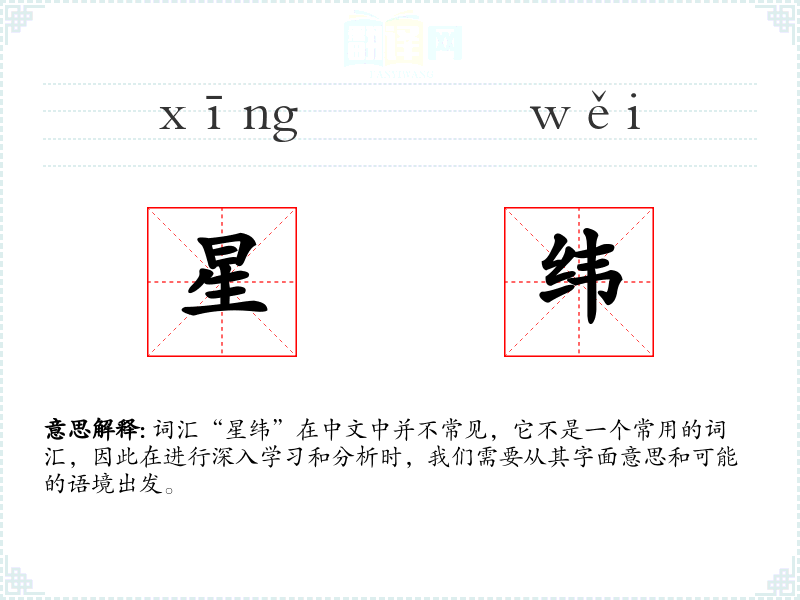 词汇“星纬”在中文中并不常见,它不是一个常用的词汇,因此在进行深入学*和分析时,我们需要从其字面意思和可能的语境出发。