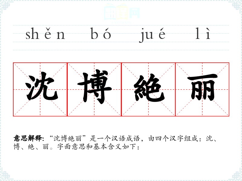 “沈博絶丽”是一个汉语成语,由四个汉字组成:沈、博、絶、丽。字面意思和基本含义如下:
