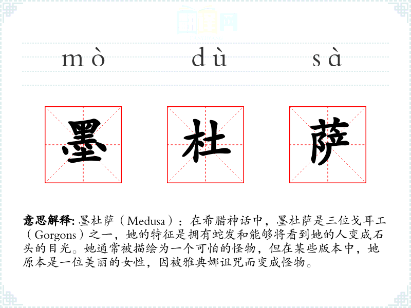 "墨杜萨"的意思解释、墨杜萨是什么意思由翻译网汉语词典查词提供。