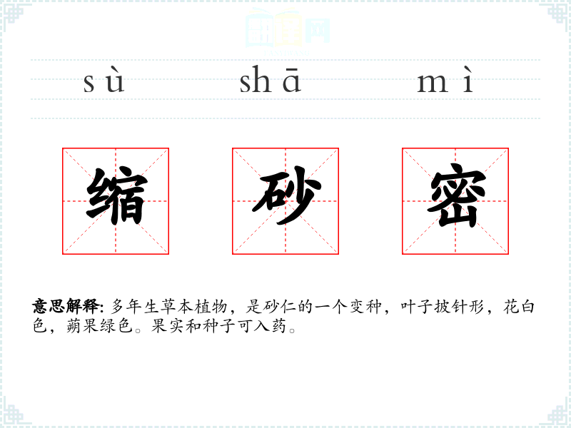 缩砂密的分字解释