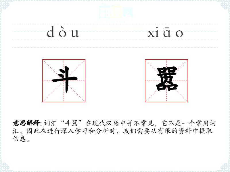 词汇“斗嚣”在现代汉语中并不常见,它不是一个常用词汇,因此在进行深入学习和分析时,我们需要从有限的资料中提取信息。