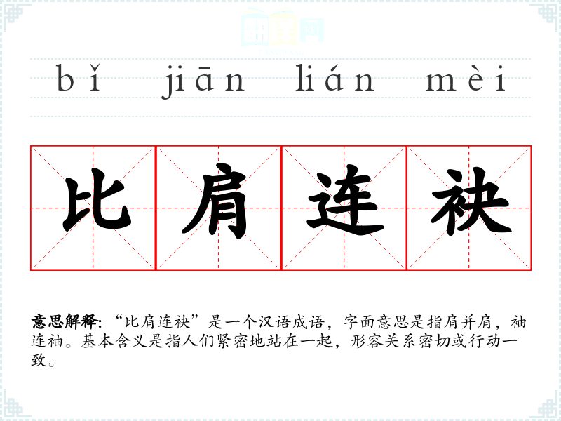 “比肩连袂”这个成语在强调团结和协作的语境中非常有用。它不仅传达了人们紧密站在一起的视觉形象,还强调了共同行动和团结一致的重要性。在我的语言学*和表达中,理解和运用这个成语有助于我更好地表达团结和协作的概念。